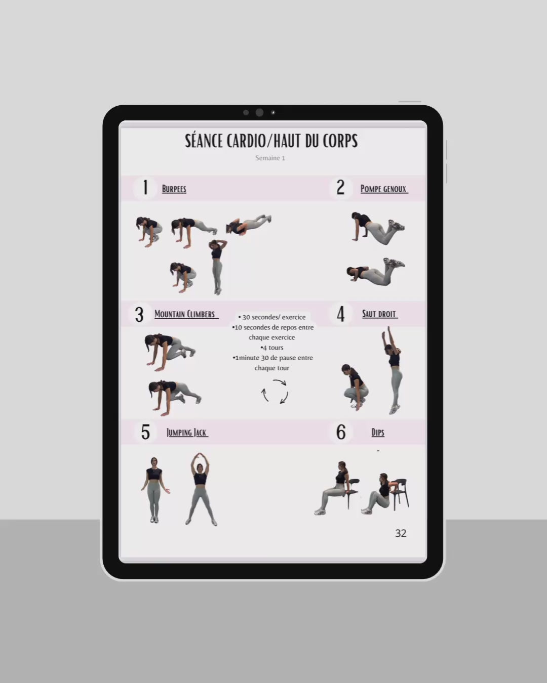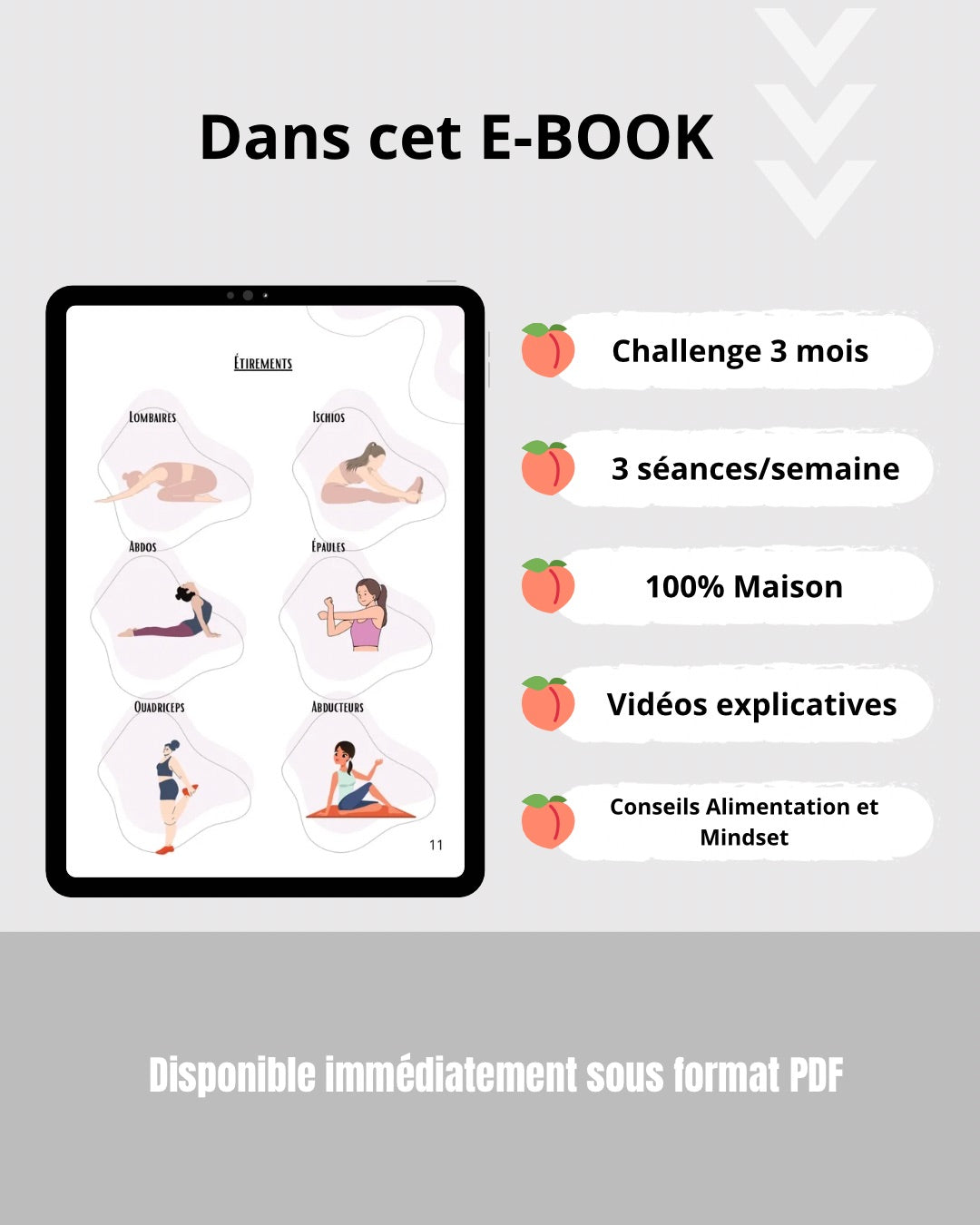 Pendant 3 mois, suivez un programme structuré, progressif et motivant, centré sur la remise en forme totale de votre corps + renforcement des fessiers intense . Adapté aux débutantes comme aux plus sportives, ce challenge vous guide semaine après semaine avec des séances claires, des explications détaillées et des conseils pratiques.